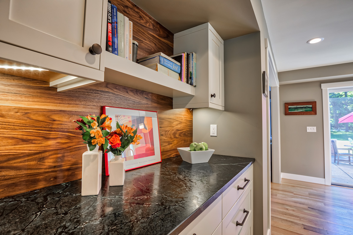 This typical 1970’s home had loads of space, but the dark closed-concept aesthetic of the period just wasn’t working for the homeowners. The design team took this first floor from groovy to awesome without changing the footprint or moving any major walls. With innovative space planning and unique selections the designers made the inefficient rooms into beautiful and functional spaces.