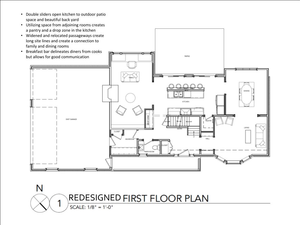 They knew the current configuration was not using the home's space effectively. With a growing family and a love of entertaining, our clients envisioned a home that would accommodate large gatherings that could easily flow onto the back patio and the beautiful yard beyond.