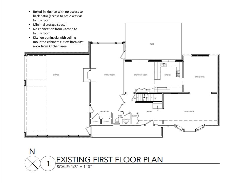 Our clients loved the home, the beautiful surrounding yard and the neighborhood, but the home was long overdue for some updates. Since they were already committed to making the investment to remodel - they figured why not look into options for reconfiguring the existing first-floor spaces to make them work better for their family?